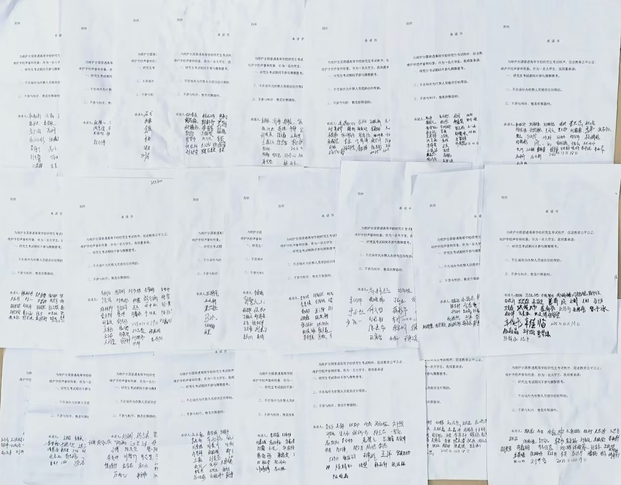 学院组织全体学生签署《承诺书》,承诺书明确要求学生做到:不参与舞弊替考、不在场外为作弊人员提供任何帮助、不参与制作和售卖作弊器材。学生们郑重签名,以书面形式作出承诺,将“拒绝替考、诚信应考”的理念转化为自觉行动,切实做到敬畏规则、坚守诚信。