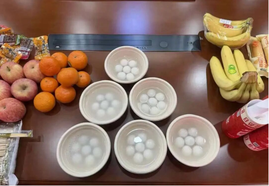 慰问过程中,老师们与同学们围坐交谈,细致询问大家的返校行程、假期生活规划及新学期的学习目标。“从家乡返校路上还顺利吗?”“新学期有什么学习和生活上的打算?”一句句贴心的问候,拉近了与同学们的距离。随着热气腾腾的汤圆出锅,黑芝麻的香甜,瞬间弥漫了整个房间。大家品尝着自己的劳动成果,聊着家乡的风俗,分享着假期的趣事,欢声笑语不断。这不仅仅是一顿简单的汤圆聚餐,更是一场关于爱与归属的对话。在这个离家千里的校园里,因为这份意外的关怀,让“团圆”二字有了更深的定义。